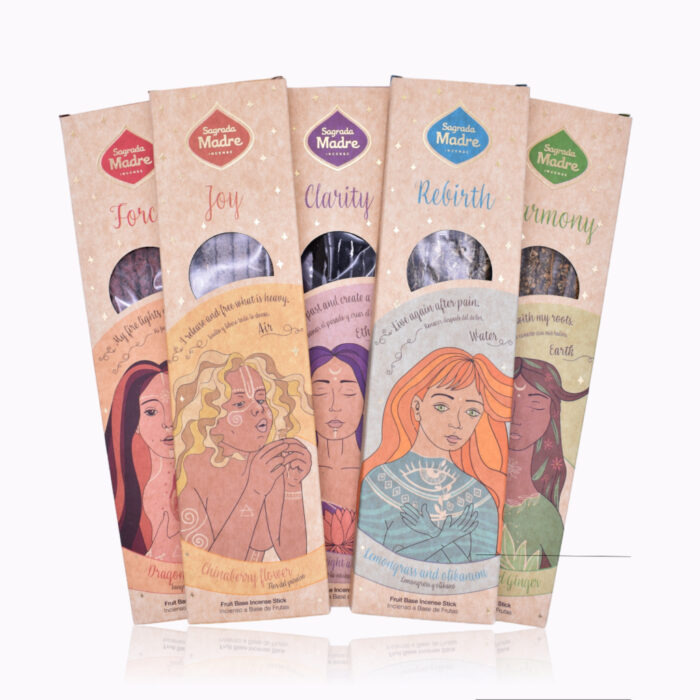 Sagrada Madre’s 5 Elements Incense line is crafted to represent and balance the fundamental elements of nature: Water, Air, Fire, Earth, and Ether. Each variety is meticulously handcrafted with natural ingredients, offering unique scents and symbolic meanings: