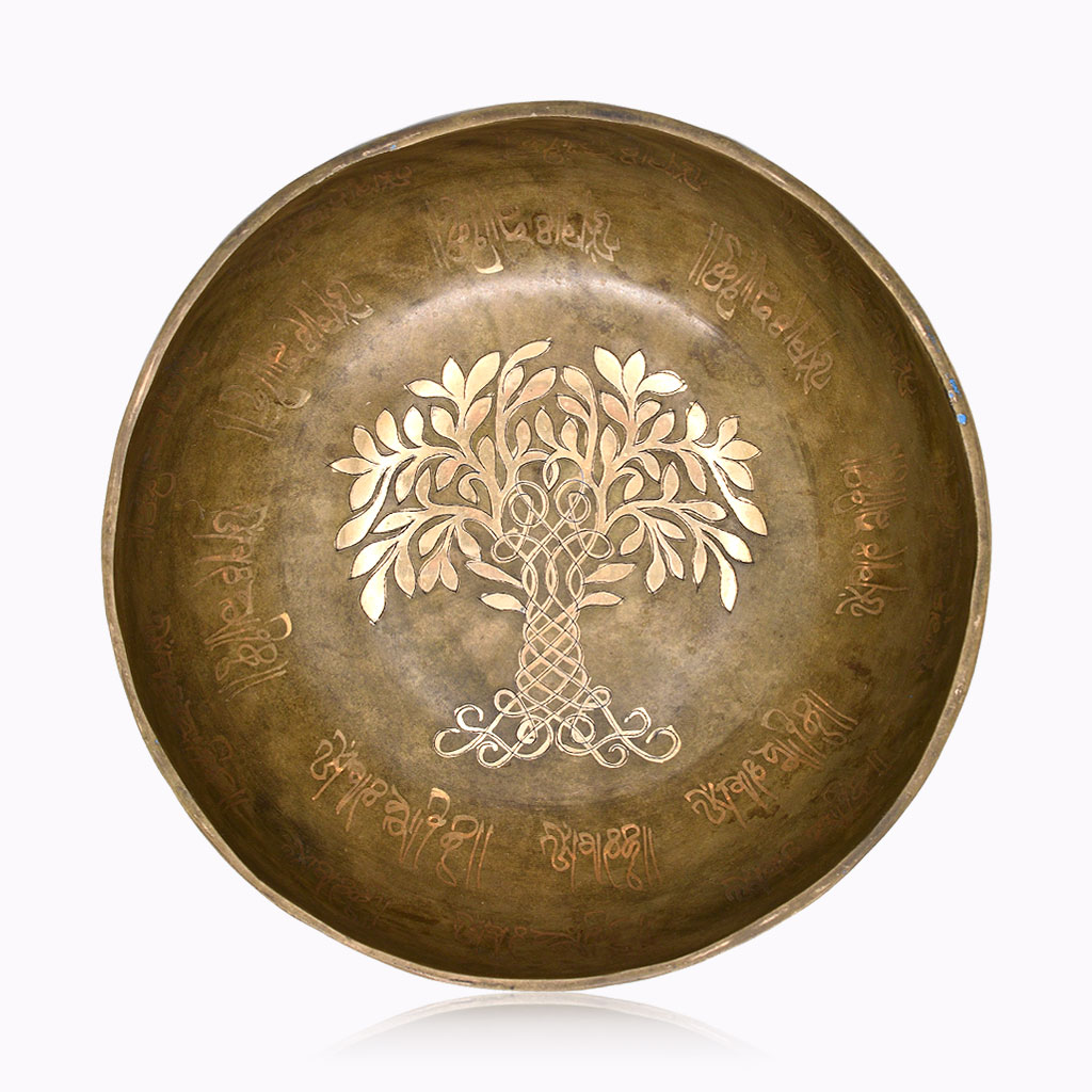 Crafted in the traditional Himalayan style, this handcrafted Tree of Life Singing Bowl is a powerful instrument for sound healing, meditation, and spiritual connection. Measuring 20.5 cm in diameter and weighing approximately 1.280 kg, it features a beautifully engraved Tree of Life inside the bowl—symbolising balance, grounding, and the eternal cycle of life—surrounded by sacred mantras on the inner and outer walls.